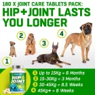 Nice large supply of of joint supplement for older dogs. This contains, amongst other active ingredients, Glucosamine and Chondroitin, which have really helped my dog in the past so I am sure these will continue to help her. The dog takes 2 a day and has no objection to catching them and eating them. They are also easy enough to hide in cheese or ham, etc..