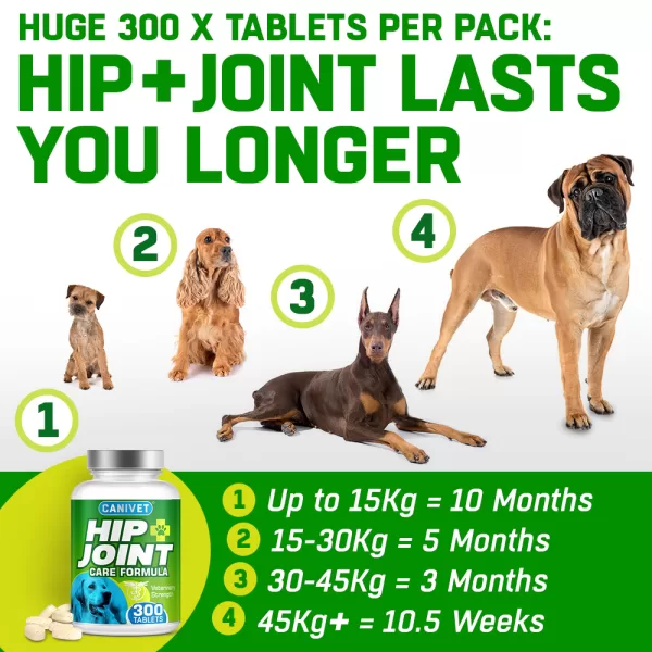 HIP+JOINT is an advanced, multi-action canine joint supplement that gets to work fast: soothing stiff joints, supporting long-term joint health and maintaining good mobility. Within 6 weeks of regular use most dogs will show genuine and noticeable improvements. Consistent use afterwards will further increase the positive effects.