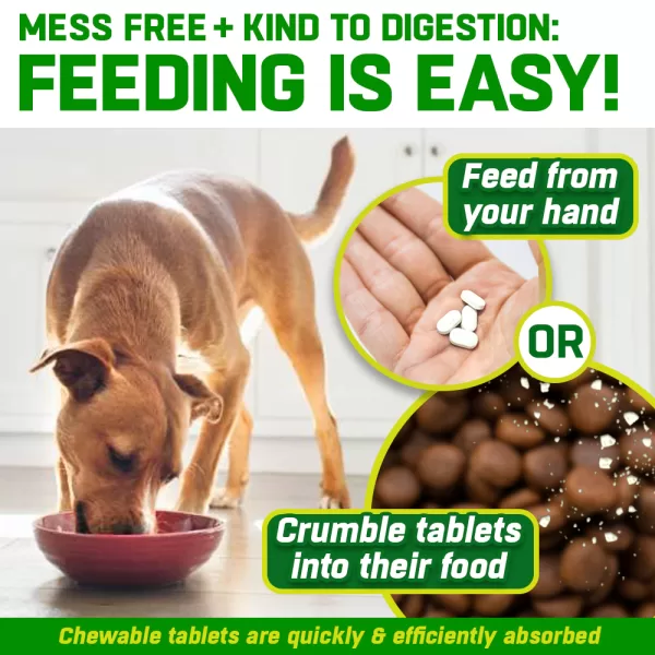 It works and the dog likes them too. After a week my dog seemed to move easier with no stiffness. I mix it into her dinner but she will take it as a treat. Our dog is a jack Russell and Sealyham terrier cross. One tablet a day.