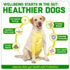 As your dog digests our ‘Tasty Chicken Flavour’ probiotic powder billions of good bacteria enter their system and drive out toxins and harmful microbes. A healthy gut not only means fresher breath and firmer stools, it also means a stronger immune system, increased energy levels and an overall healthier and happier dog!
