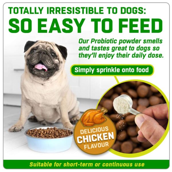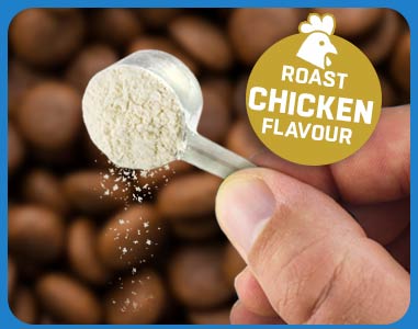 Our Chicken flavoured powder supplement is the easiest weay to provide your dog with their daily probiotic boost. Simply sprinkle it onto their food as required.