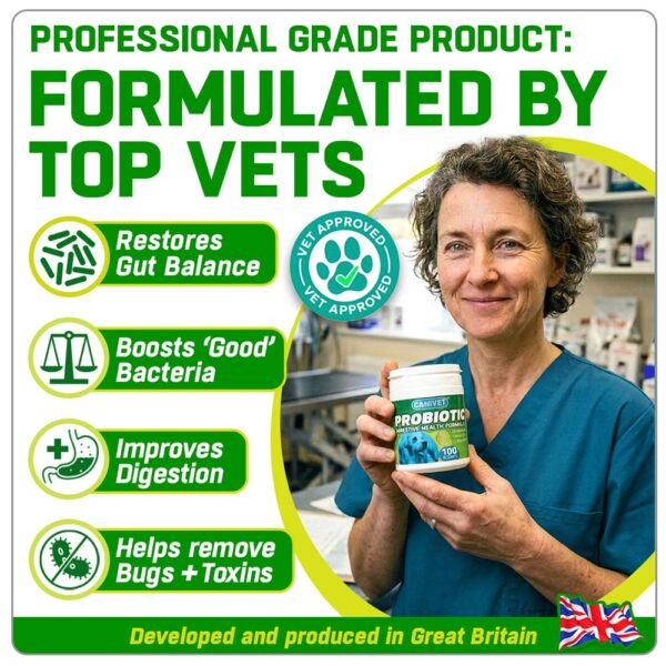 “I have a 2 year old Husky x Gsd who has had reoccurring stomach problems since he was 12 weeks old. I was recommended by my vet to try him on probiotics around 6 months ago & this stuff has worked wonders. The loose stools rapidly improved, with bouts of diarrhoea becoming less & less frequent. He started to put on weight. He also calmed down (a bit!) possibly because he wasn’t so bloated & uncomfortable. The noxious farts have also almost disappeared. Highly recommended”