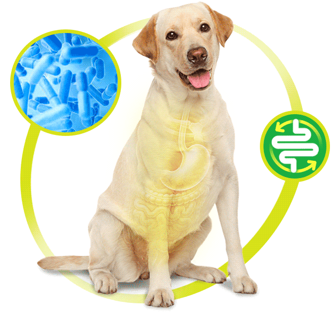 On our last visit the vet suggested trying probiotics and they work, this is my second tub, I only add it to her breakfast, no more sore tummies!! Happy dog , happy me!!