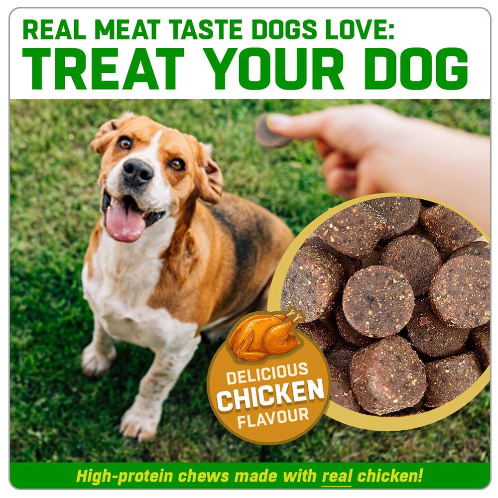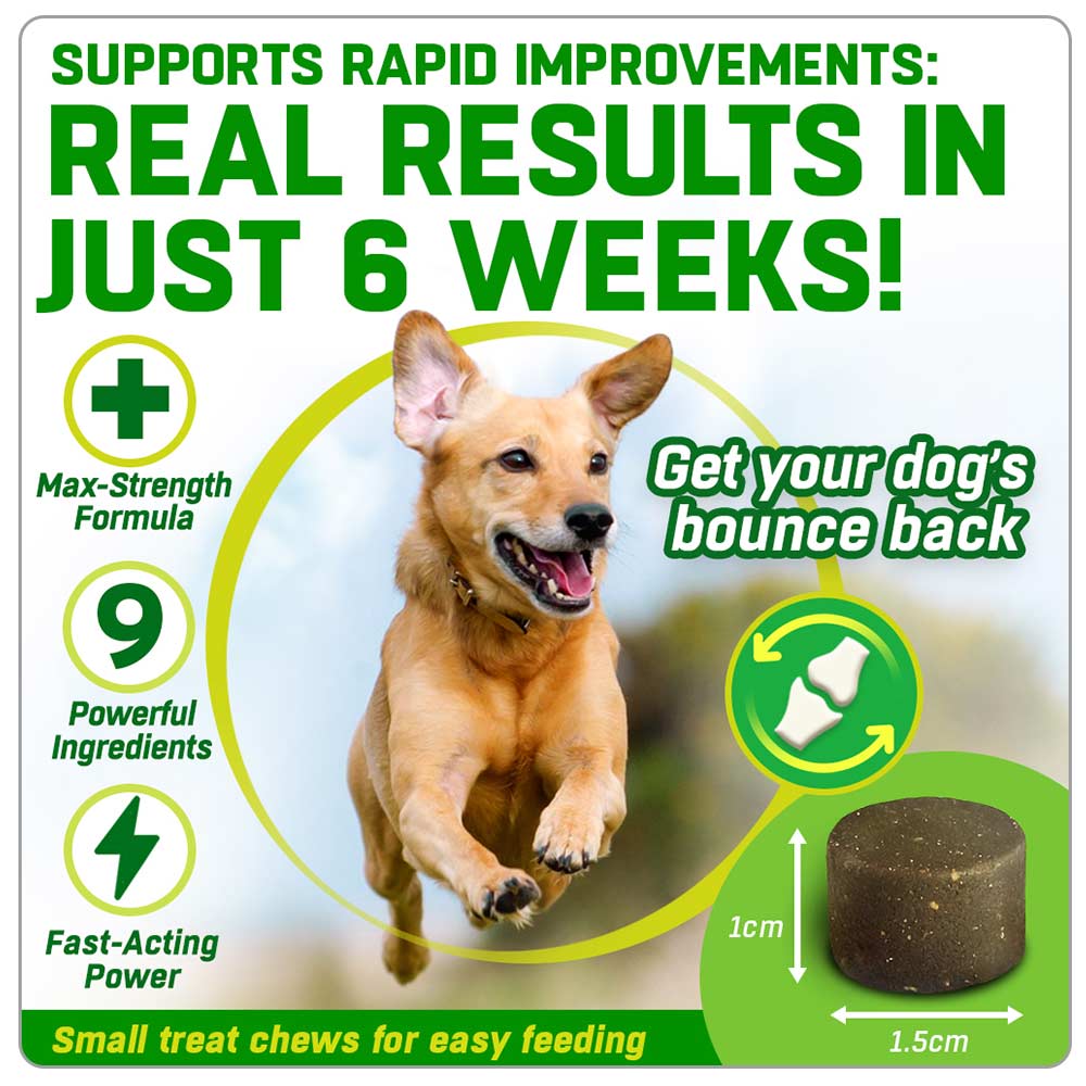 We’ve packed 9 proven active ingredients into our irresistibly meaty treat chews. In just weeks of use they can make a positive change to your dog’s joints.