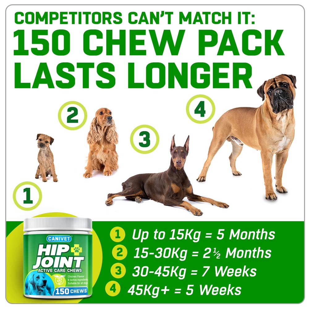 “These hip and joint chews are brilliant, my 13 year old dog doesn’t limp anymore since taking Canivet Hip and Joint care“
