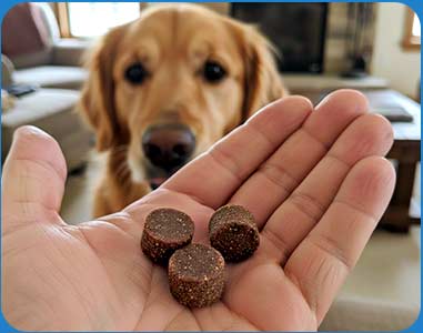 I have a breed of dog a jug but for some unknown reason he does not like the smell of this product it’s not your company’s fault the tablets works fine wrapped with corn beef but because of the cost we decided to try these chews but it’s a cost we won’t buy again sorry just not right for our dog