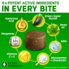 We’ve packed 9 of the most effective active ingredients in joint care for dogs into our irresistibly meaty treat chews. Our expert team knows what makes good joint supplements for dogs! In just weeks these chews can make a positive and visible change to your dog’s joint issues.
