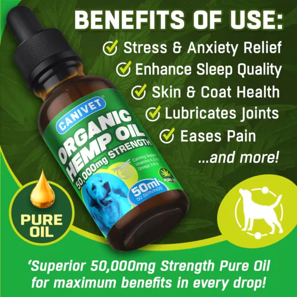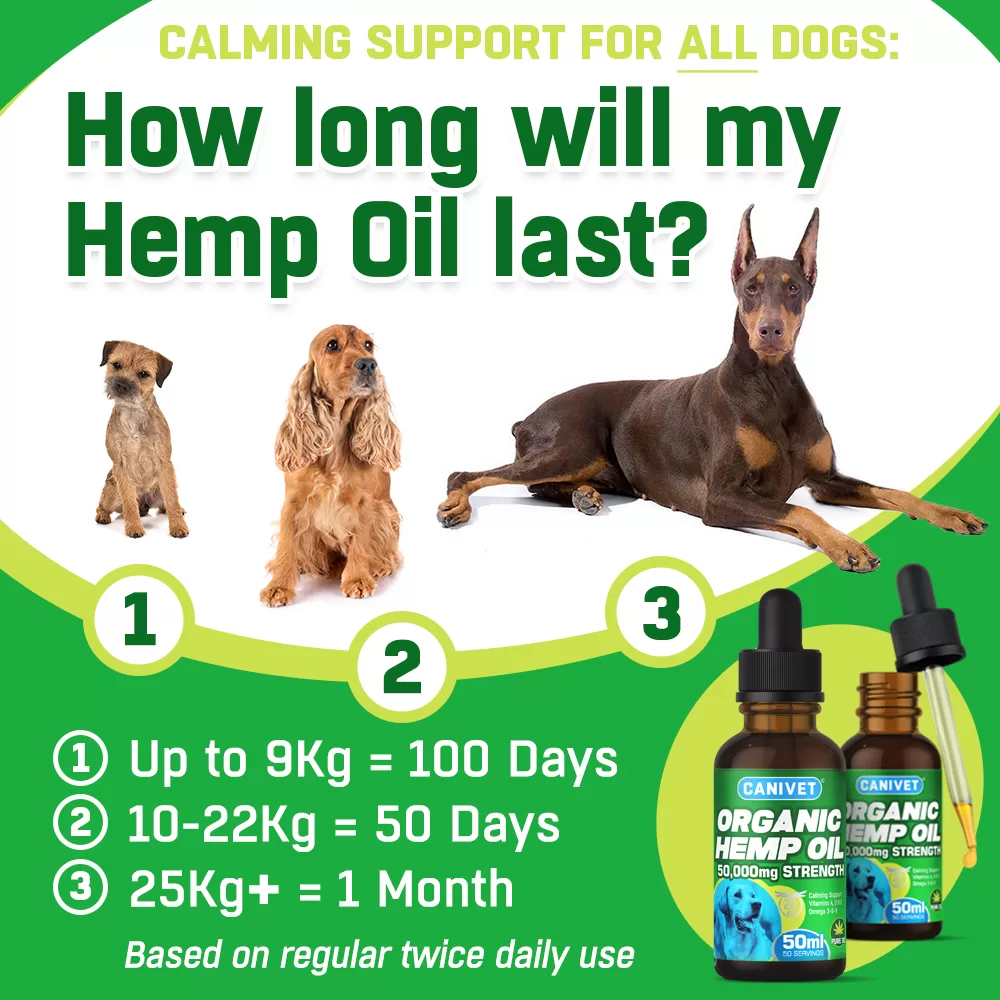 Many stressed and anxious dogs can benefit from the natural calming properties of hemp oil. It’s commonly used as a chemical-free, non-drowsy relaxant, ideal for taking the sting out of stressful events like Fireworks Night and trips to the vets while also being totally safe for regular, long-term use.