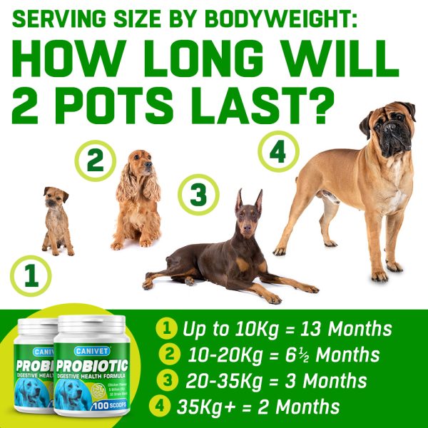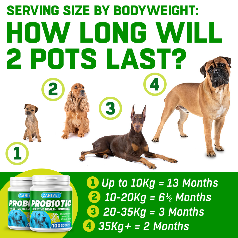 CANIVET Probiotic Powder works by rapidly improving your dog’s gut biome (the ecosystem of bacteria in their digestive tract) by introducing more of the beneficial ‘good bacteria’ in an easily-digested powder form.